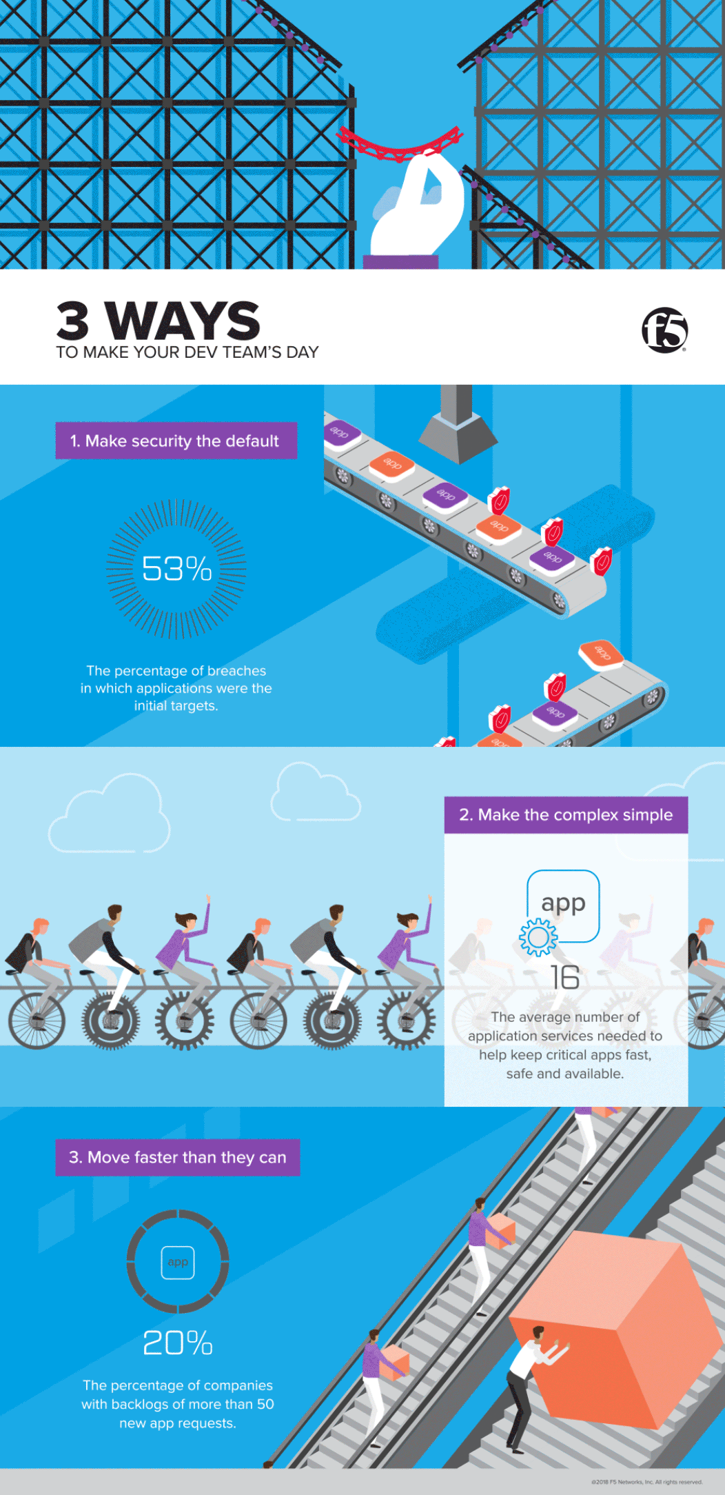 THE CHALLENGE with this project was to develop a new illustration style that could help convey abstract concepts in a more humanistic way. THE SOLUTION was to partner with F5’s illustrators and designers F5’s subject matter experts to create an illustration style that was suitable for animation. THE RESULT was a new framework for visualizing complex, and often complicated topics, leading to higher views, and clickthroughs on F5’s social channels, and F5.com.